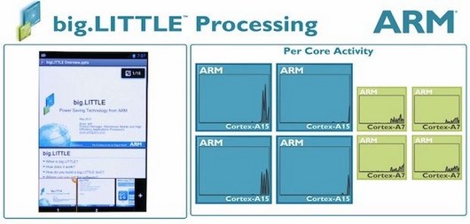Вся суть заключается в том, что при запуске приложений в работу вступают одновременно все 8 ядер, но потом в автоматическом режиме подбирается оптимальное их количество для большей эффективности и сохранения энергии аккумулятора. Также на видео будет продемонстрировано работа лишь 4 ядер процессора Cortex A7 при запущенной игре Angry Birds с периодическим подключением более мощных ядер Cortex A15. Ну и на последнем ролике демонстрируется включение в работу графического ускорителя Mali T628 GPU, который более эффективно обрабатывает изображение, нежели делает это сам процессор.