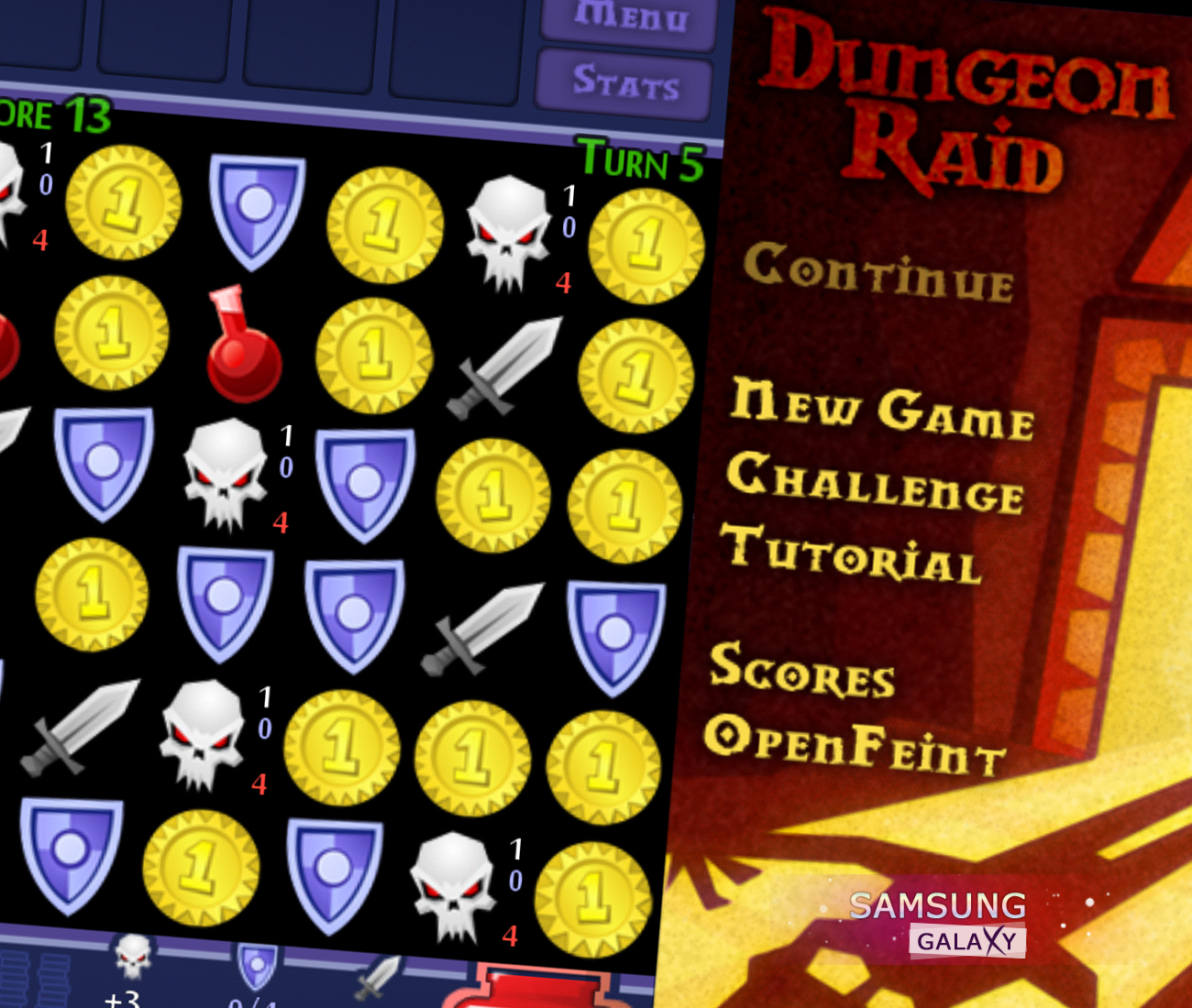 Вообще можно просто начать игру, а можно бросить вызов, который также делится на 2 структуры. Есть 4 уровня сложности. Вам нужно соединять одинаковые фигурки (кроме меча со скелетами) и таким образом выполнять различного рода действия: собрать монеты, улучшить защиту, повысить уровень здоровья, получить опыт. Все действия суммируются в разные шкалы. При заполнение вам дается возможность прокачать что-либо.