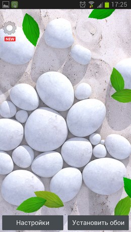Реализма добавляет и эффект прикосновения к воде, когда в месте касания появляются волны. В настройках можно указать даже звук плескающейся водички и вам захочется ещё и ещё раз прикоснуться к экрану. Также иметься возможность добавить листочки, которые будут плыть по течению, задач их количество и скорость. Эти живые обои для андроид основаны на движке OpenGL, что придает анимации плавности и эффектности.