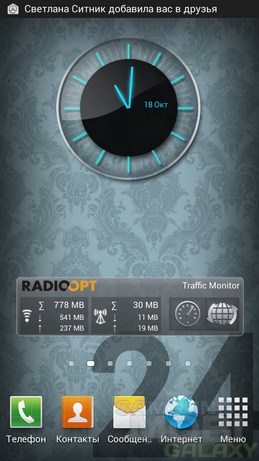 На данный момент тут 3 скина: классический и два цифровых. Каждый из них может быть оформлен в одном из 3х цветов: черном, белом и бирюзовом. Также тут можно назначить будильник, либо запуск какого-либо приложения по заданному времени.
