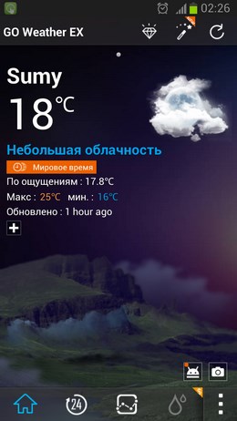 Шикарное приложение-синоптик, созданное специально под GO Launcher EX, что само по себе уже интересно, поскольку для лаунчеров дополнительные приложения всегда выполнены в интересном и уникальном графическом исполнении. Это наверняка понравится всем пользователям, предпочитающим яркие программы и виджеты, при этом, не используя никакие дополнения или лаунчеры. Именно к роду таких и относится GO Wether EX – программа, позволяющая всегда быть в курсе изменений погодных условий.