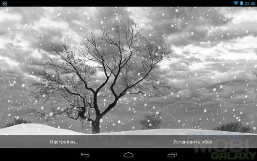 Несмотря на окончание лютой зимы, данная пора по-прежнему продолжает быть любимой очень многими людьми. Lonely Tree Live Wallpaper – интерактивные обои, которые просто пропитаны духом холодного времени года и поражают своей реалистичностью. На экране вашего Galaxy устройства раскинется великолепный пейзаж с заснеженными просторами и небольшими деревцами, которые одиноко раскачиваются со стороны в сторону от пронизывающего ветра, который гуляет в степи. А как прекрасно выглядит снег, который непрерывно сыпется с неба.