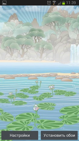 Новые интерактивные обои, которые выполнены в потрясающей рисованной графике с мультипликационными эффектами. После установки сего украшательства на рабочем столе вашего устройства Samsung Galaxy раскроется удивительный вид на горную местность, которую рассекает водоем, покрытый прекрасными цветами лотоса.