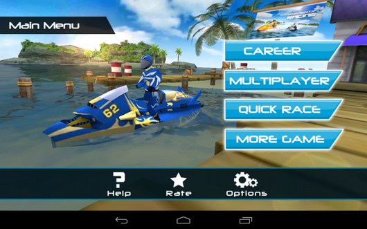 Выберите доступные чемпионаты и начните гонку в одному из десятков состязаний. Для того чтобы открыть доступ к овому этапу необходимо удачно завершить предыдущий. Управление в игре очень простое – нажатие на правую часть экрана заменяет педаль газа, на левую – тормоз, а повороты осуществляются за счет акселерометра, путем вращения вашего смартфона или планшета. Имеется возможность покупки новых водных мотоциклов с ещё лучшими параметрами или же улучшение имеющегося байка.