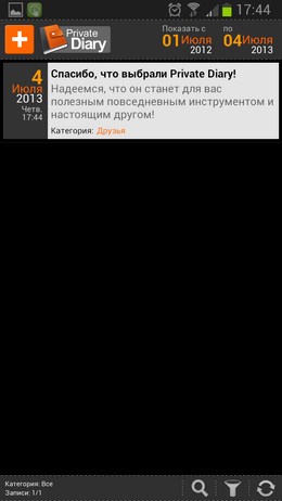 Если вы желаете начать свой личный дневник, либо надоело писать все от руки в тетради, которую любой может взять и прочесть ваши личные записи, тогда установите личный дневник для андроид. Небольшое приложение Private Diary является именно таки приложением. Записывайте все свои мысли, идеи, чувства, эмоции, события и много другое. Не бойтесь писать свои секреты ведь данное приложение гораздо безопасней и удобней привычного дневника.