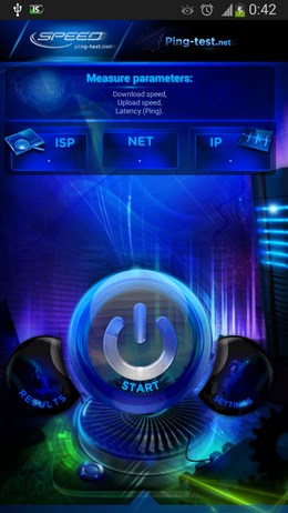 Интерфейс представлен в двух вариантах и оба они позволяют с ходу же разобраться в работой Speed Test, благодаря интуитивно понятному интерфейсу. В зависимости от того, какого типа ваше соединение с интернетом будь то Wi-Fi или 3G, Speed Test в автоматическом порядке подберет нужные параметры без вашего вмешательства. Программа проведет тест на скорость приема и отдачи, а также измерит пинг – задержку передачи пакетов. После тестирования вам будет предоставлена подробная информация о соединении, включая поставщика услуг, ваш IP адрес и скорость.