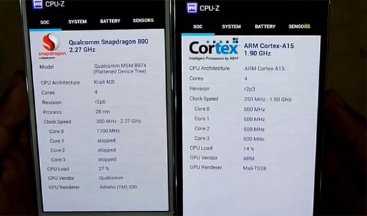 Сравнение Samsung Galaxy Note 3 с процессорами Snapdragon 800 и Exynos Octa 5420