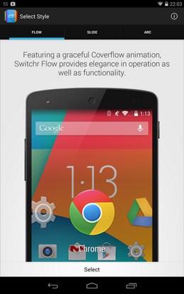 Приложение Switchr позволит управлять вашими приложениями ещё быстрее и эффективнее. Просто сделайте нужный жест на дисплее (в зависимости от того какой стиль выбран) и выбирайте популярные, запущенные или любые другие указанные вами. Всего в приложении имеется три стиля выбора приложений свайпом: Flow, Slide и Arc. Все они разнятся только эффектом анимации выбора приложений и местом расположения.