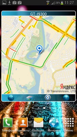 Простенький виджет, который имеет всего одну платку, вынеся на рабочий стол которую вы увидите информацию о своем местоположении. То есть в окошке приложения будет отображаться карта с отметкой положения вашего устройства. При этом учитывается идентификатор виджета, который автоматически создается при его добавлении на смартфон или планшет Samsung Galaxy.