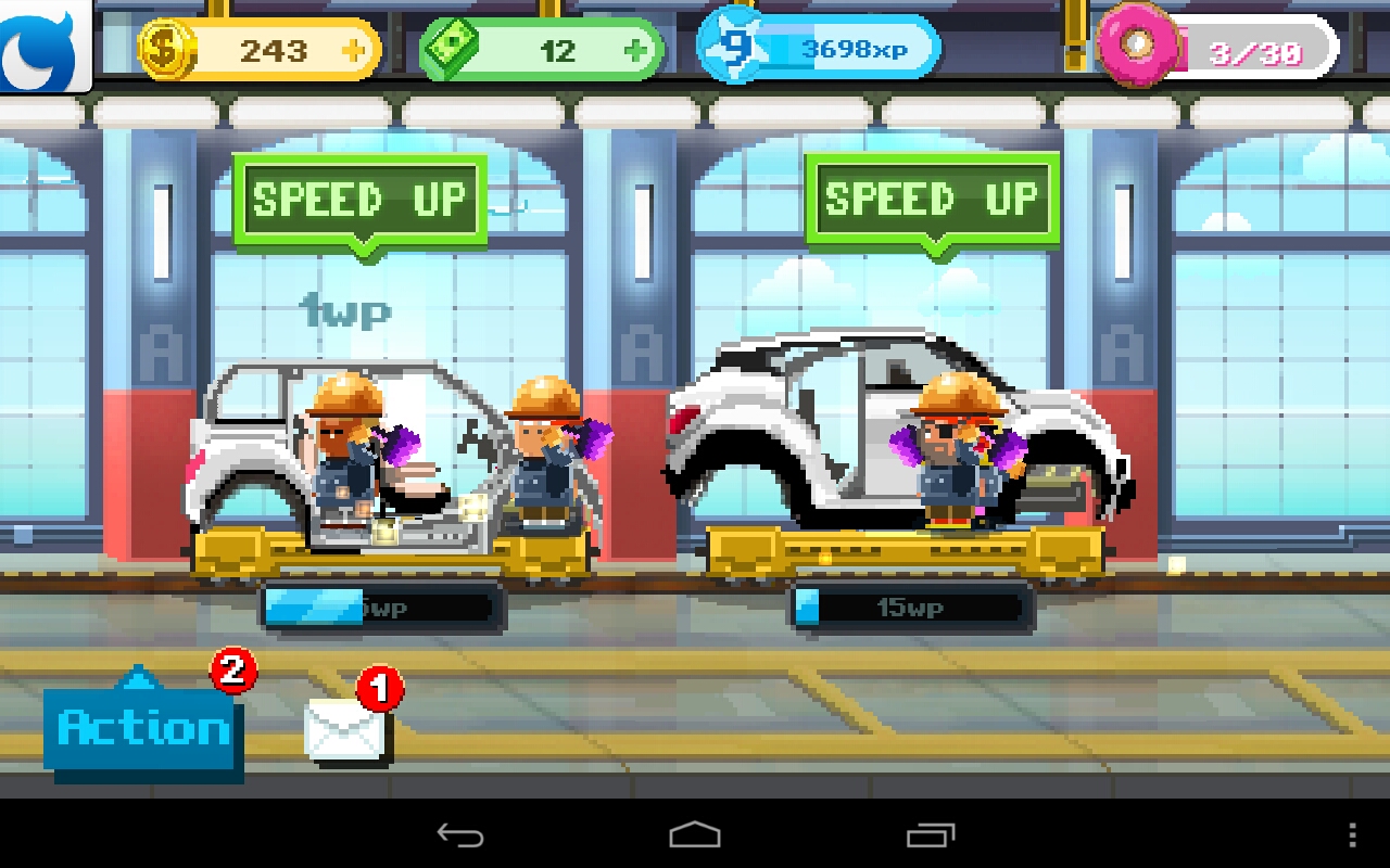 Весь игровой процесс будет крутиться вокруг вашей фабрики, где вы должны руководить своими рабочими. Следите за конвейером, контролируйте продажи и свой магазин, достраивайте новые здания, изучайте и конструируйте новые модели автомобилей. Все эти действия займут вас на долгие часы, а экономическая составляющая и дополнительные мини-игры не дадут вам заскучать очень долго. Но имейте в виду, что без грамотного развития и подхода, ваш завод быстро обанкротится. Не допустите этого!