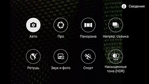 - Владельцам доступно несколько стандартных режимов съёмки