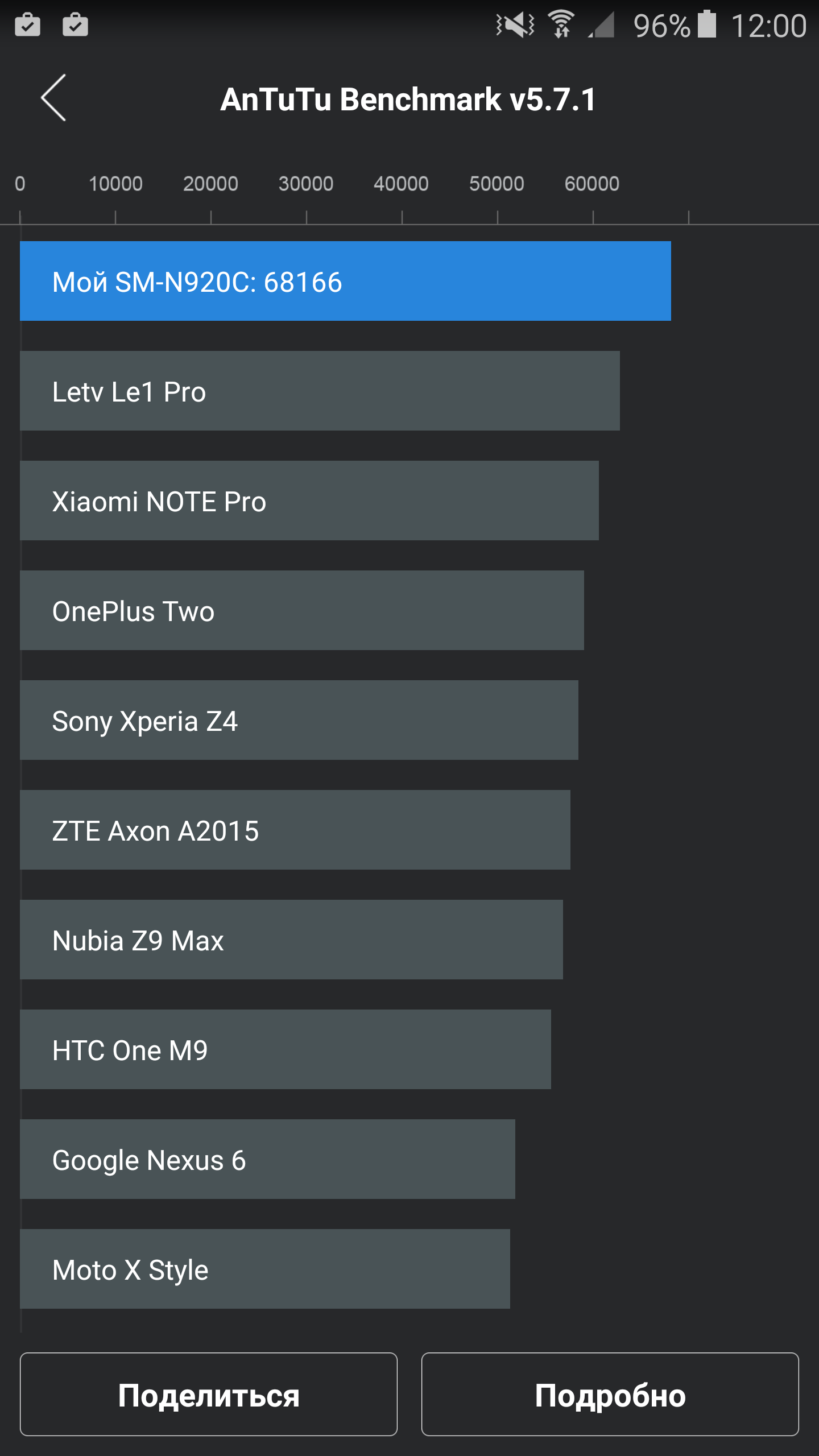 - Производительность Note 5 показывают отличную — по тестам AnTuTu смартфон зарабатывает больше 68к