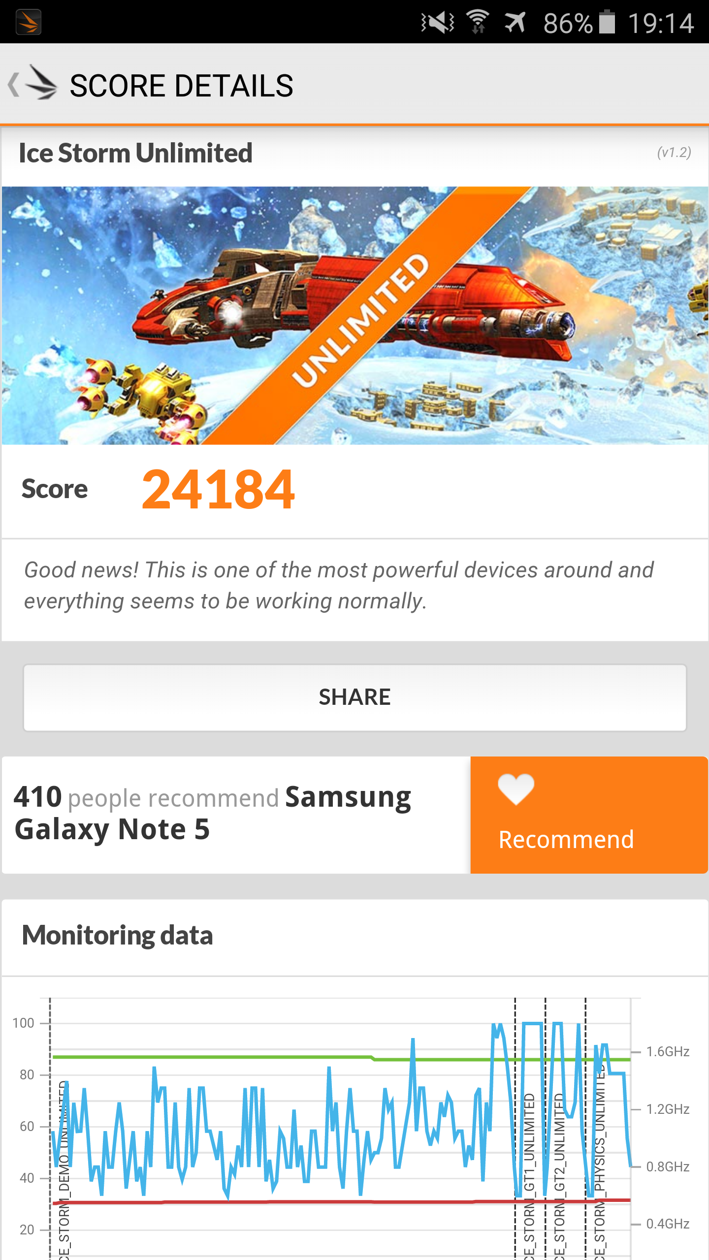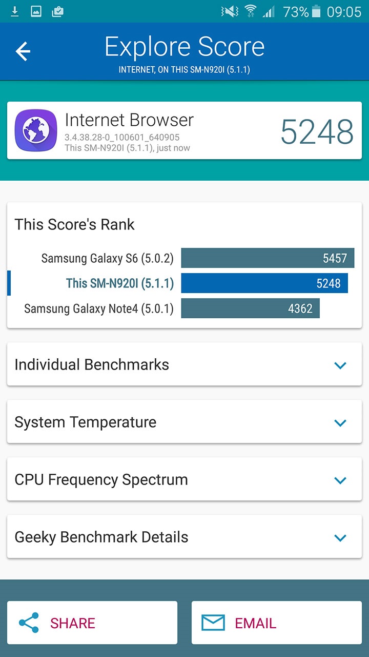 В общем, начинка Note 5 ничем не отличается от Samsung Galaxy S6 Edge — те же процессоры с теми же характеристиками. С хорошими характеристиками, надо отметить.