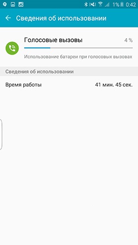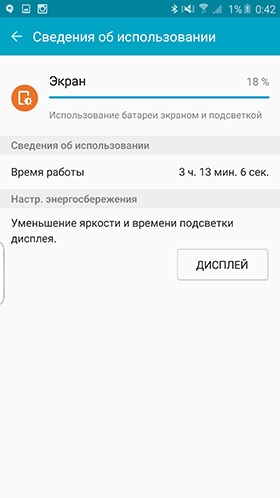- Для наглядности выводится статистика использования заряда в процентном соотношени