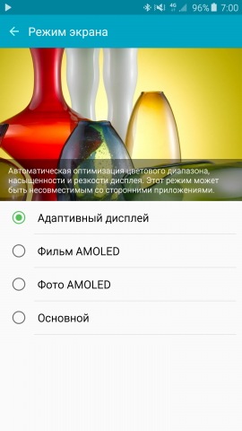 - На выбор предоставлено несколько стандартных цветовых режимов