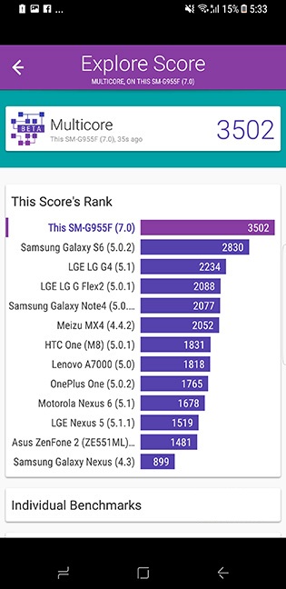 Скорость и качество работы без тестов сложно отследить, ведь телефон без проблем справляется с любой задачей, какой бы ресурсоёмкой она не была. Проблем не вызывают ни 3D-игры, ни многооконный режим. Одним из самых приятных моментов станет то, что устройство крайне быстро откликается на нажатия. Даже в топовых S7 и S7 Edge время отклика гаджета занимало заметные 1-2 секунды. S8/S8+ могут похвастать практически моментальной реакцией.