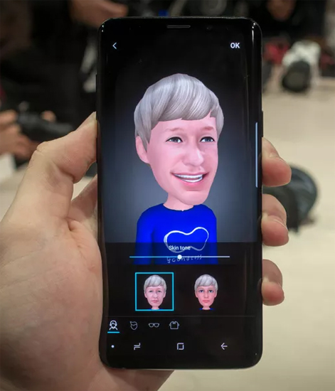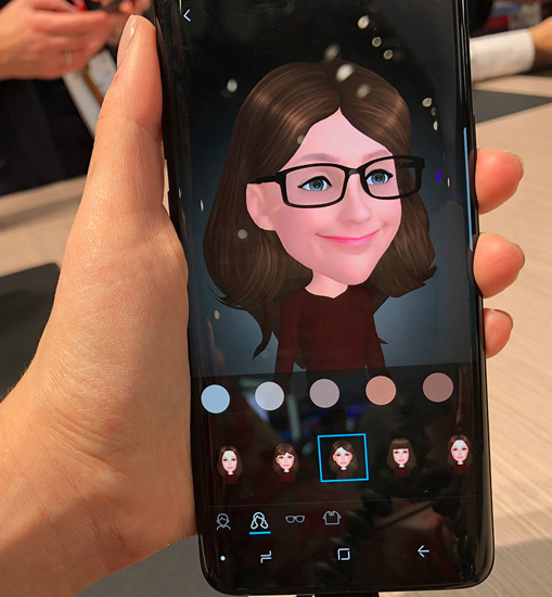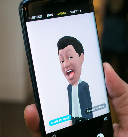 В противовес анимированным эмодзи, широко разрекламированными Apple, Samsung постарался придать им пользовательскую индивидуальность. Из полученного со встроенной камеры снимка формируется картинка (аватар) с возможностью редактирование множества деталей — цвета волос, причёски, наличия аксессуаров и пр.